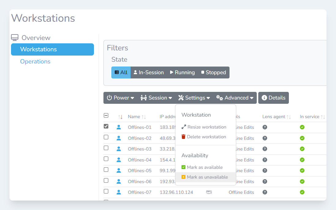 It's possible to mark a workstation as āunavailableā, which prevents users from being assigned the workstation.