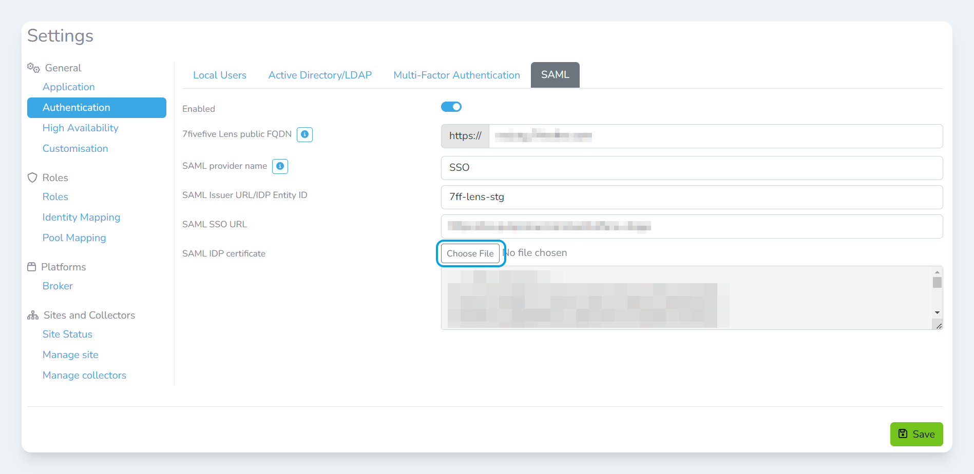 Configuring the Lens Portal (SP)