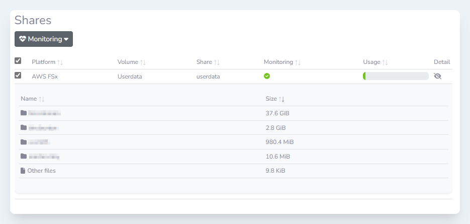 Monitoring share usage can be very helpful when diagnosing issues and offboarding users. It is possible to monitor some shares whilst not monitoring other shares.